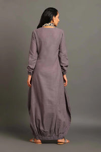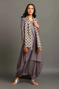 +This captivating piece, crafted in beautiful grey, features a distinctive silhouette that flows gracefully, culminating in a unique elasticated hem. Side pockets offer functionality, while the fluid silhouette ensures ease for casual days or travel. A minimalist yet striking outfit is perfect for the modern woman. The look can be accentuated with a stole or a sleeveless jacket.