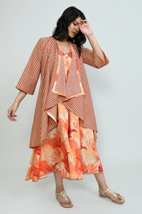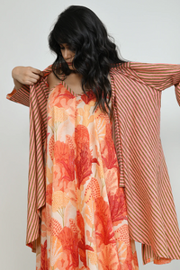 +A breezy flowy striped shrug in vibrant tones, layered for added depth and charm. Perfect for daytime strolls or laid-back brunches, this look is equal parts playful and effortless.