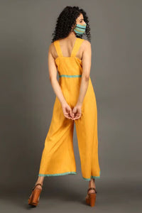 +Declaim your minimalist mantras by wearing this sleeveless jumpsuit with jacket set. Tailored to sartorial perfection from cotton silk, it assures a soft and soothing touch against the skin. The U-neckline makes it a captivating choice.